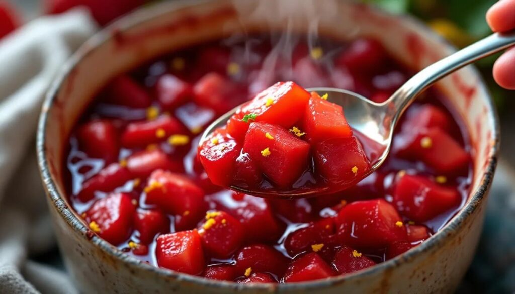 Anfang April bringt der Frühling die ersten zarten Rhabarberstangen auf den Markt – und kaum ein Gemüse signalisiert den Saisonwechsel so eindeutig wie dieses leuchtend rote, leicht pelzig behaarte Gewächs. Wer jetzt auf dem Wochenmarkt zugreift, bekommt die jüngsten Triebe: besonders zart, weniger sauer, mit einer frischen Fruchtigkeit, die nach wenig mehr als einem Topf und zehn Minuten Geduld verlangt. Ein Rhabarberkompott ist keine Wissenschaft – aber es gibt Handgriffe, die über Mittelmaß und wirklich gutes Ergebnis entscheiden.