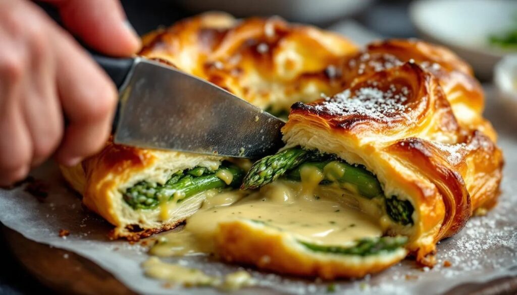April in Deutschland: Die Spargelsaison ist offiziell eröffnet. Die weißen und grünen Stangen füllen die Marktauslagen, der Boden riecht nach feuchter Erde, und wer jetzt zugreift, bekommt den frischesten Spargel des Jahres. Doch nicht immer muss es die klassische Beilage mit Sauce hollandaise sein – Spargel im Blätterteig bringt die Aromenfülle dieser Gemüsekönigin in eine knusprige, goldbraune Form, die sich für Einladungen, Osterbrunch oder einen besonderen Sonntagsabend perfekt eignet.