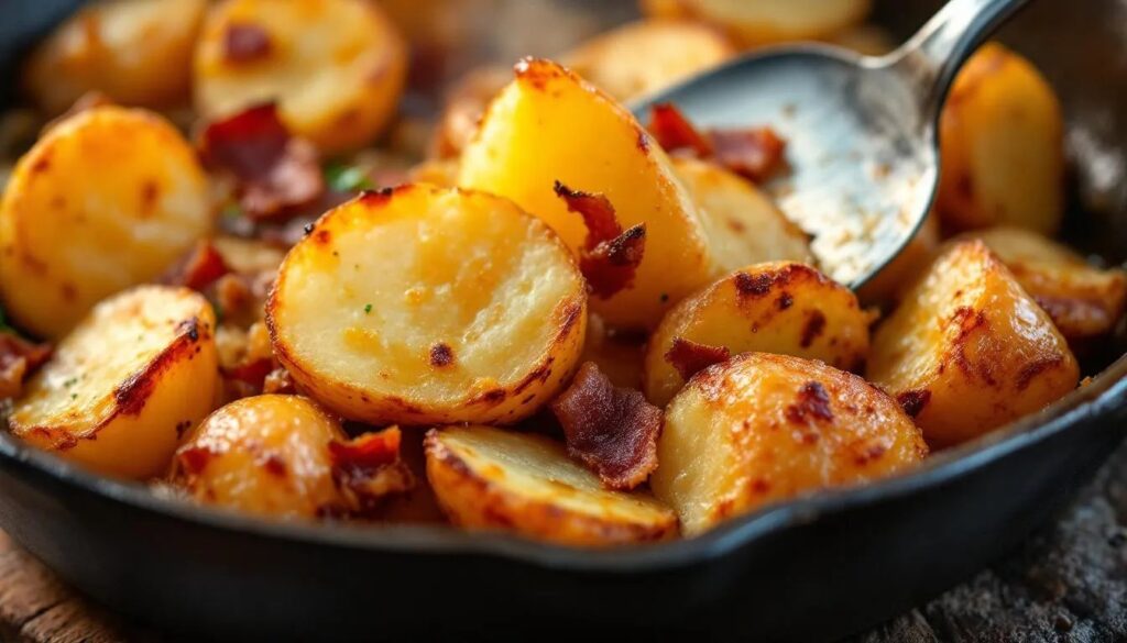 Regional gibt es deutliche Unterschiede: Im Rheinland werden Bratkartoffeln fast immer mit Zwiebeln und Speck zubereitet, in Bayern bisweilen mit frischen Kräutern und ohne Speck serviert, in Norddeutschland häufig als Beilage zu Matjes oder Bismarckhering. In der Schweiz kennt man eine verwandte Version als Rösti — dort werden die Kartoffeln gerieben statt in Scheiben geschnitten und in einer einzigen, flachen Schicht gebraten, die am Tisch wie ein Kuchen aufgeschnitten wird. Allen Varianten gemeinsam ist der Grundgedanke: Einfache Zutaten, hohe Hitze, Geduld.